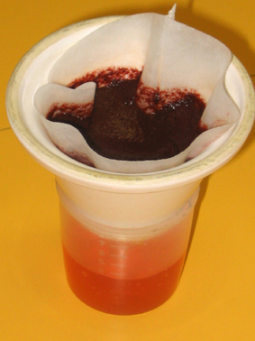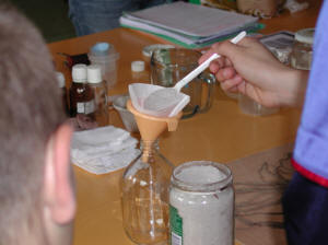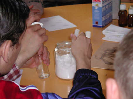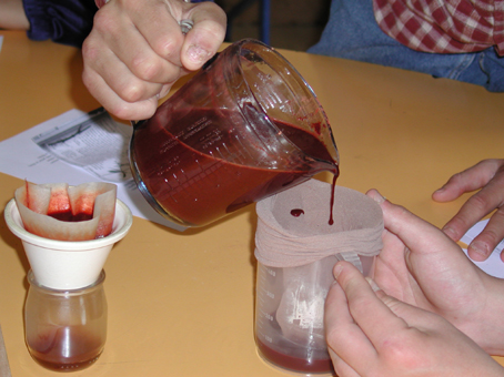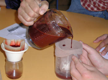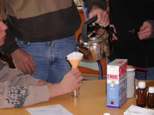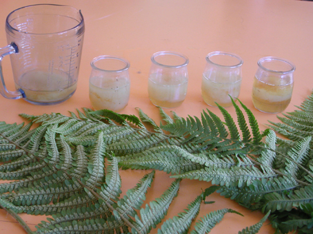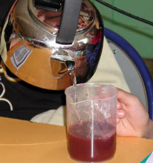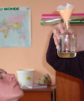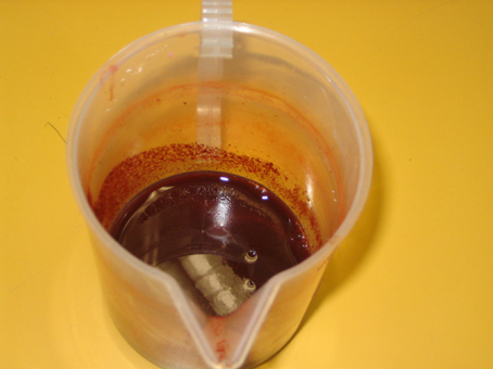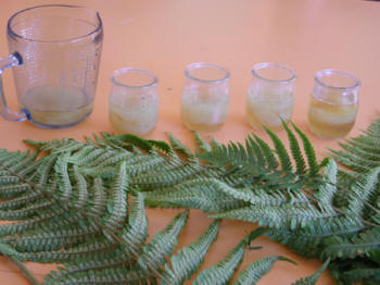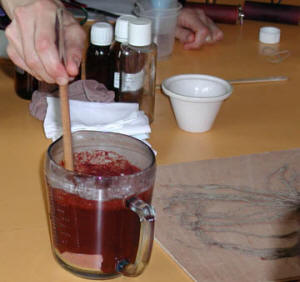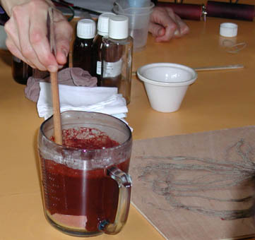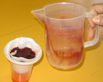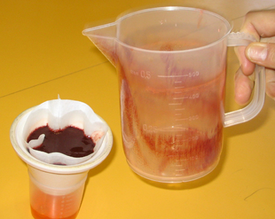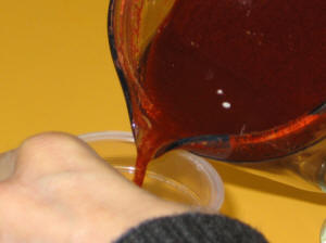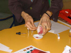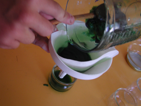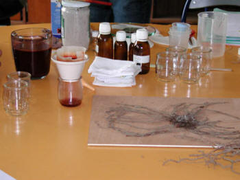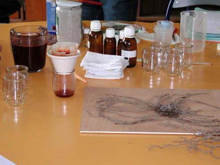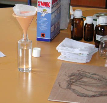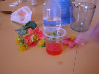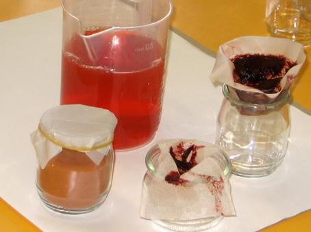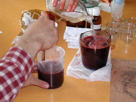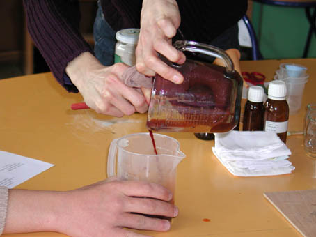 l'alun, nous versons la lessive dans les liquides colorés obtenus. |