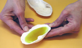 pâte dorée qu'elle vient de fabriquer avec poudre métallique et