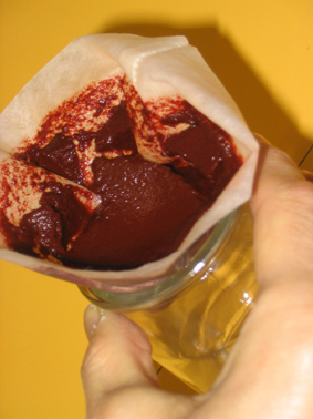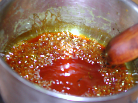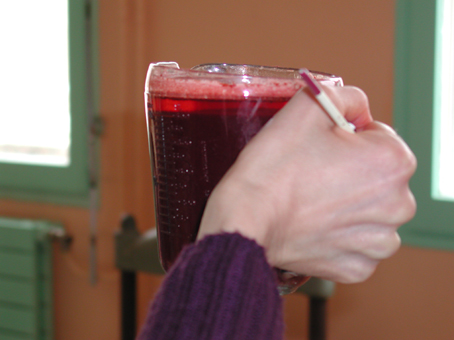légère écume se former à la surface des jus colorés; peu à peu, une