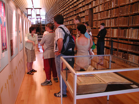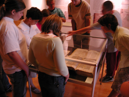 s’arrêter devant les manuscrits présentés en vitrine ; ils investissent le forum