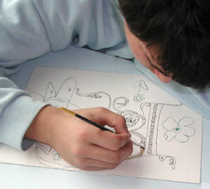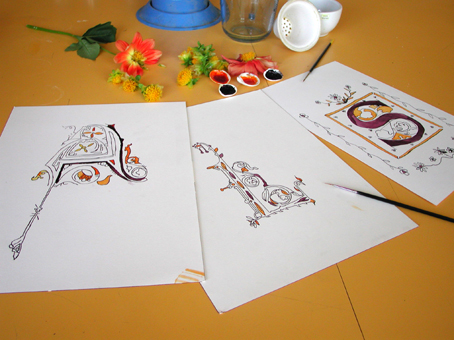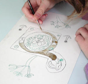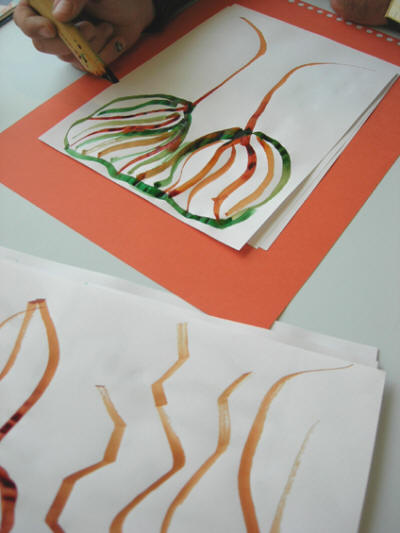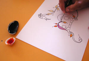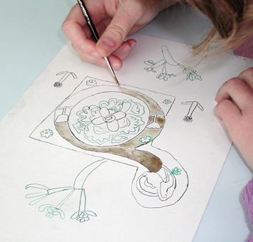 reproduire les contours pour les cerner à l'encre noire. Puis elle imagine une