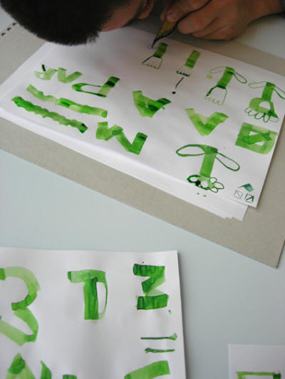 la Médiathèque. Après avoir choisi sa lettre, Amandine s'applique à en